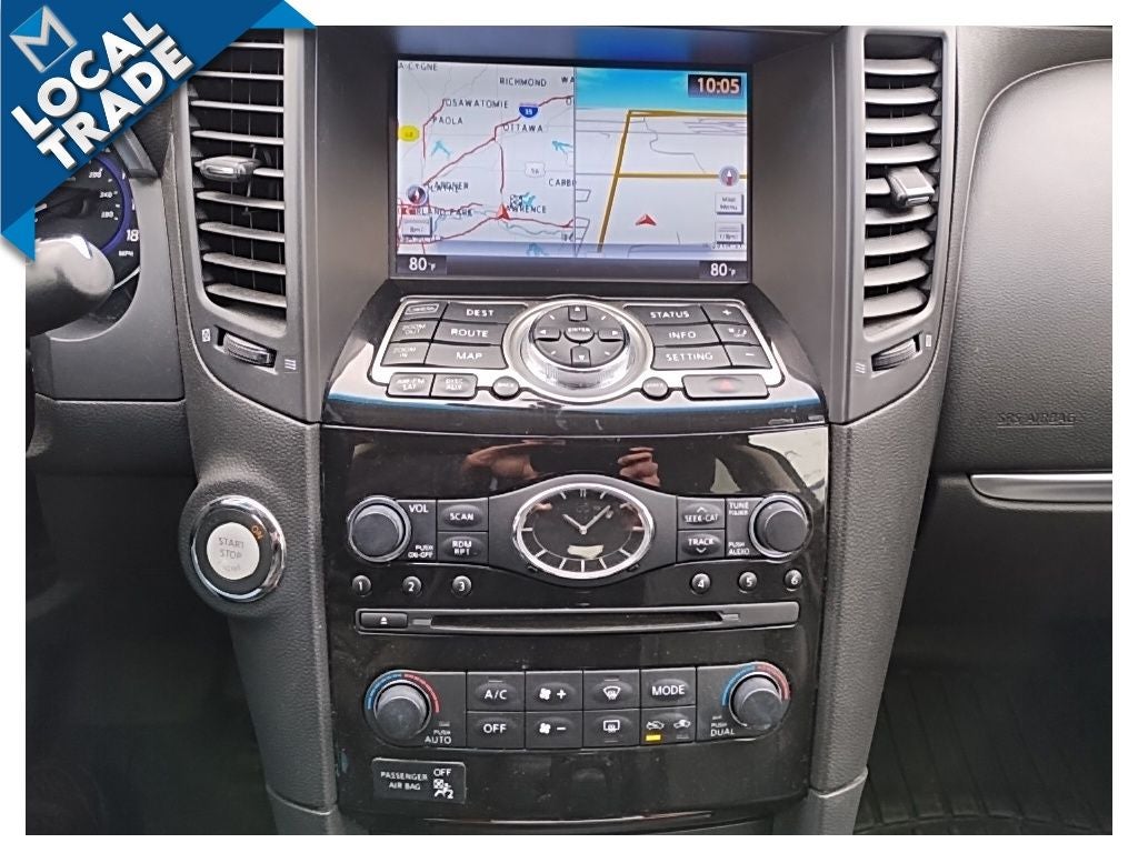 Finished in stunning Graphite Shadow with a refined graphite leather interior, this QX70 brings together style and substance in one irresistible package. Thanks to the Premium and Deluxe Touring Packages, youll enjoy features like navigation, a back-up camera, heated and cooled front seats, woodgrain trim, a power sunroof, and a premium sound system that turns every drive into a concert. With all-wheel drive and a 7-speed automatic transmission, it's ready for Kansas weather or a cross-country road trip without breaking a sweat.