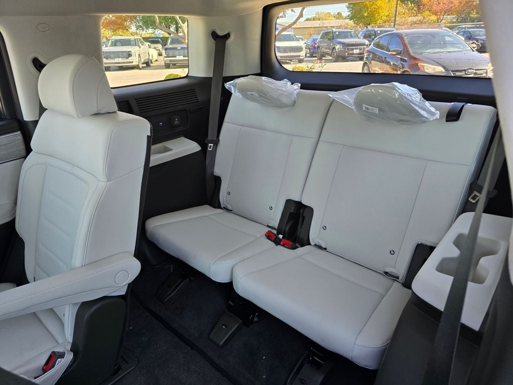 The 2025 Santa Fe marks a complete redesign featuring a boxier, adventure-inspired look and a roomier third-row layout. Its tailgate and cargo area were specifically engineered to create a more open, outdoor-friendly terrace feel ideal for modern families on the go.