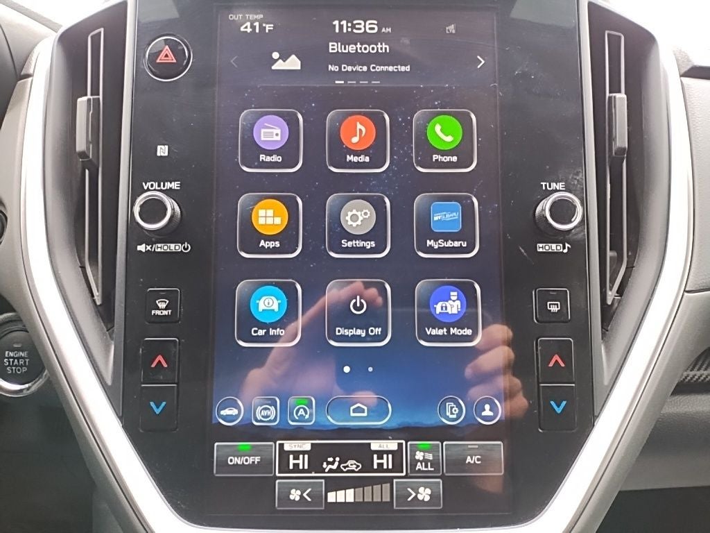 - Radio: Subaru 11.6" Multimedia Plus System -inc: AM/FM stereo, HD Radio, multi-touch gesture high resolution display screen, voice activated controls, Bluetooth® audio streaming and hands-free phone connectivity, Bluetooth® hands-free SMS text messaging connectivity, iPod control capability, SiriusXM w/360L (4 months free trial included/subscription required after), SiriusXM Travel Link (4 months free trial included/subscription required after), smartphone integration: Android Auto and Apple CarPlay w/full screen view and wireless connection, USB and Over The Air (OTA) audio system update, steering wheel audio system and Bluetooth® control switches, 6 speakers (2 dash panel tweeter, 2 front door and 2 rear door), illuminated 3.5mm auxiliary input jack, illuminated front USB A and C input/charge ports and illuminated rear USB A and C charge ports
